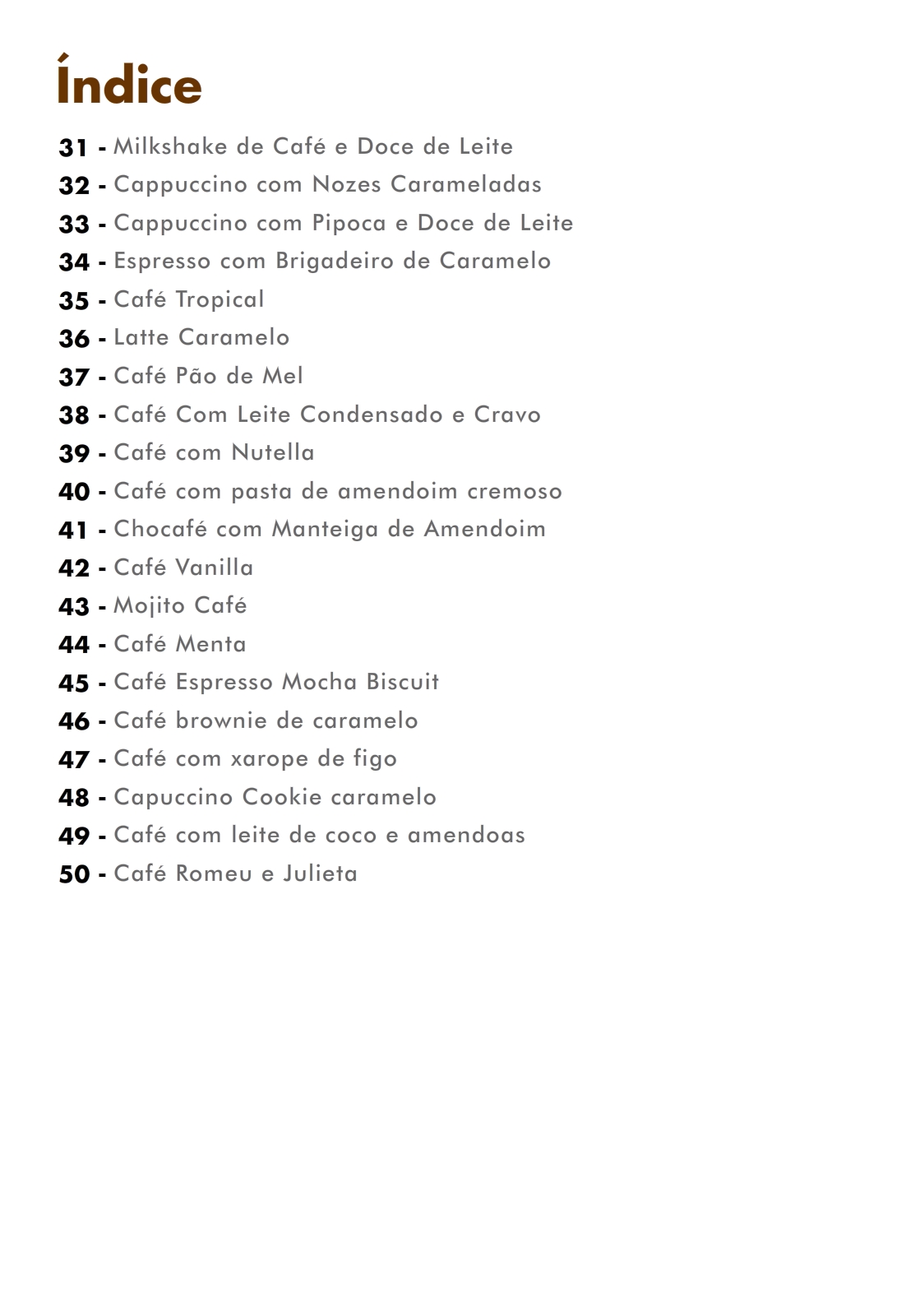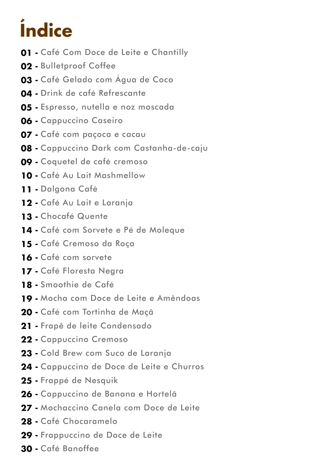 Adquirindo o BEBIDAS COM CAFÉ, você terá acesso imediato a 50 receitas. São horas de conteúdo organizados em tópicos para estudar no seu tempo e evoluir junto comigo.